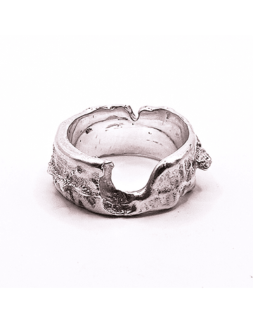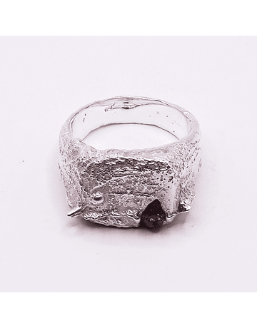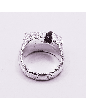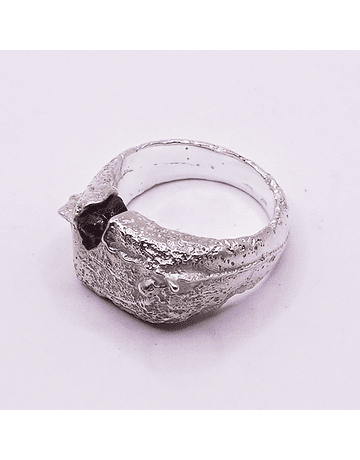 Allowing the sand used to cast the piece to create its own unique textures and engulf the ruby as if it grew within the piece its self.
